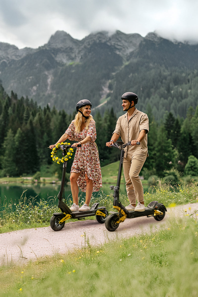 Dual motors with 2400W peak power, hydraulic brakes for safer urban and outdoor rides.