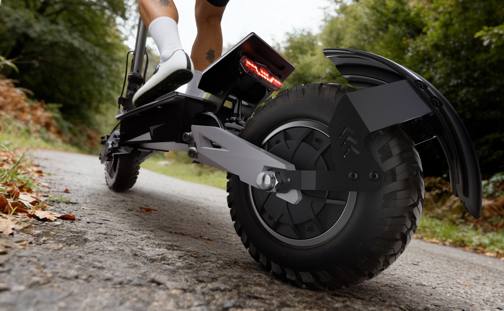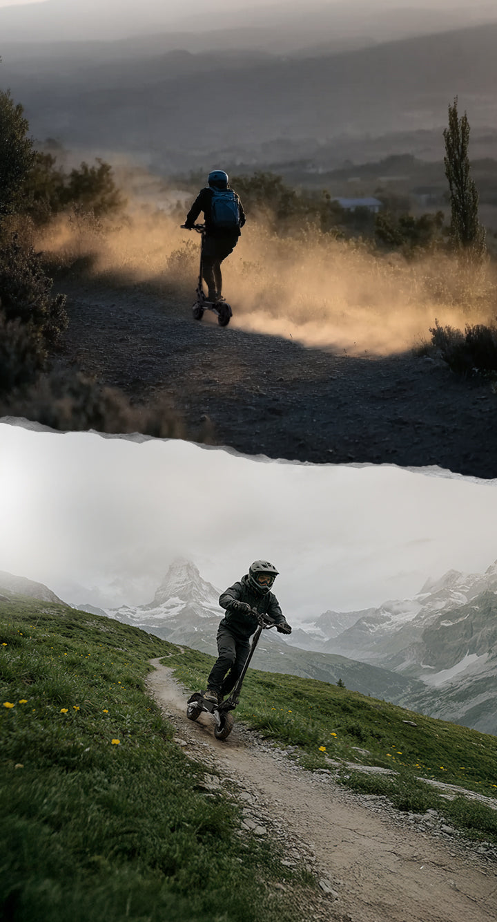 Riding off smooth pavement means constant vibration and repeated impacts. T10’s suspension is tuned to manage those forces — absorbing shock, reducing fatigue, and keeping the ride controlled and predictable over distance.